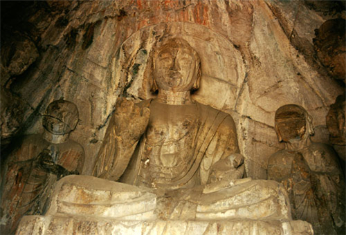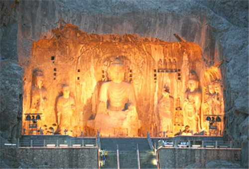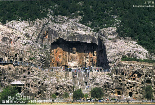 龍門石窟位于洛陽市城南6公里處的伊闕峽谷間。由于地處都城之南,古代帝王擬己為“真龍?zhí)熳印?,故又稱“龍門”。龍門自古為險(xiǎn)要關(guān)隘,交通要沖,向?yàn)楸冶貭?zhēng)之地。因山青水秀,環(huán)境清幽,氣候宜人,素為文人墨客觀游勝地。又因石質(zhì)優(yōu)良,宜于雕刻,故而古人擇此而建石窟。這里青山綠水、萬象生輝,伊河兩岸東西山崖壁上的窟龕星羅棋布、密如蜂房。1961年國(guó)務(wù)院公布龍門石窟為全國(guó)第一批重點(diǎn)文物保護(hù)單位。